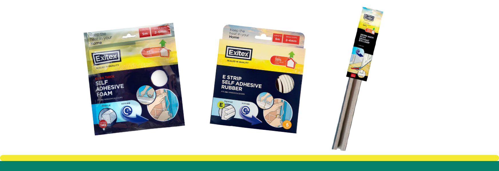 B&M recommends great products that help you retain heat in your home, like the Exitex Under Door Foam Draught Excluder 914mm and Exitex E-Strip Self-Adhesive Rubber Roll 5m.