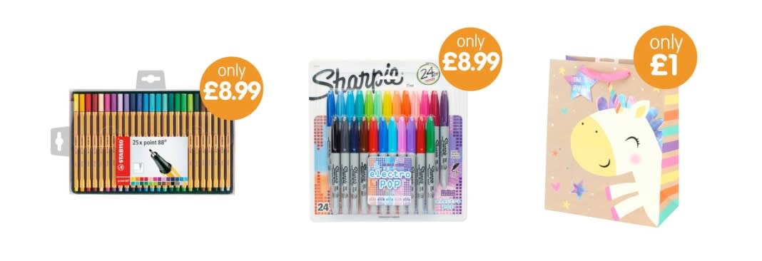 Like Stabilo Point 88 Fineliner Pens 25pk for just £8.99 (you’ll have to fork out £17.99 for the same pack in Staples), and Sharpie Electro Pop Fine Point Permanent Markers 24pk, also just £8.99 (a trip to Argos will set you back £14.99!)*
