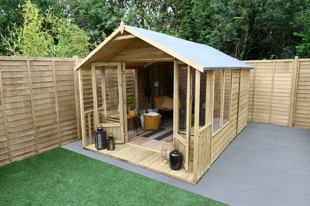 Your garden is an essential part of your property, and if you look after it then it’s going to add value to your home. The 8' x 10' Forest Oakley 25yr Guarantee Double Door Apex Summer House (2.61m x 3.01m) is a case in point.