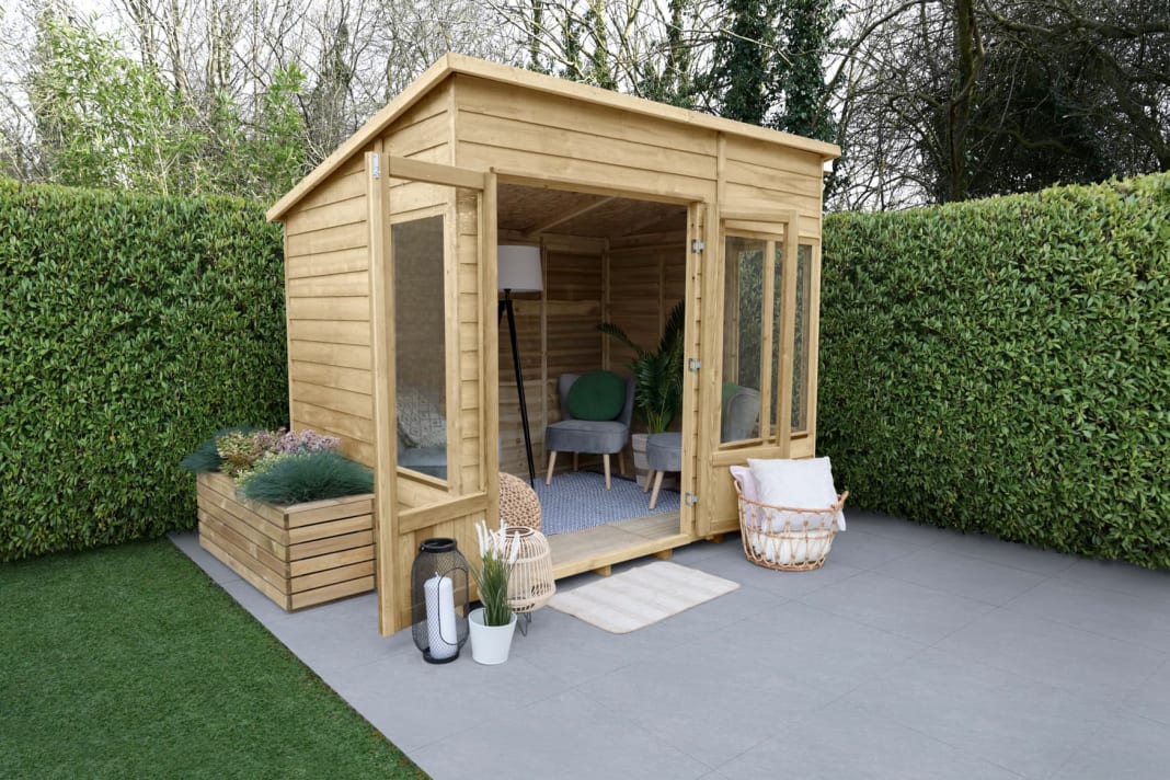 These premium summerhouses are all beautifully designed and expertly built by Forest - Britain’s leading manufacturer of wooden garden buildings. They share a number of common features, which include a smart modular design, pressure-treated build, market-leading 25-year guarantee, wide double doors and extensive shatterproof glazing.