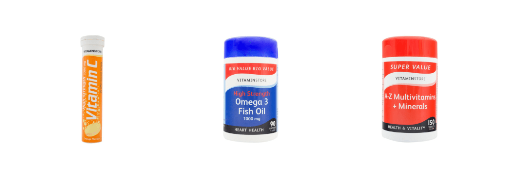 We recommend picking up supplements rich in vitamin C, zinc and healthy oils like Omega-3.