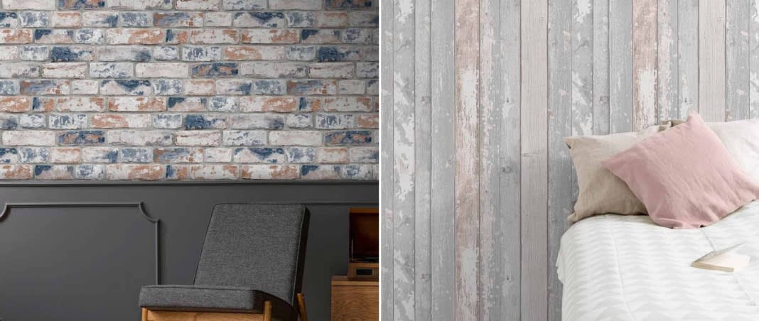 For something more shabby chic, this photographic faux wall gives the realistic effect of real wood panels on your walls