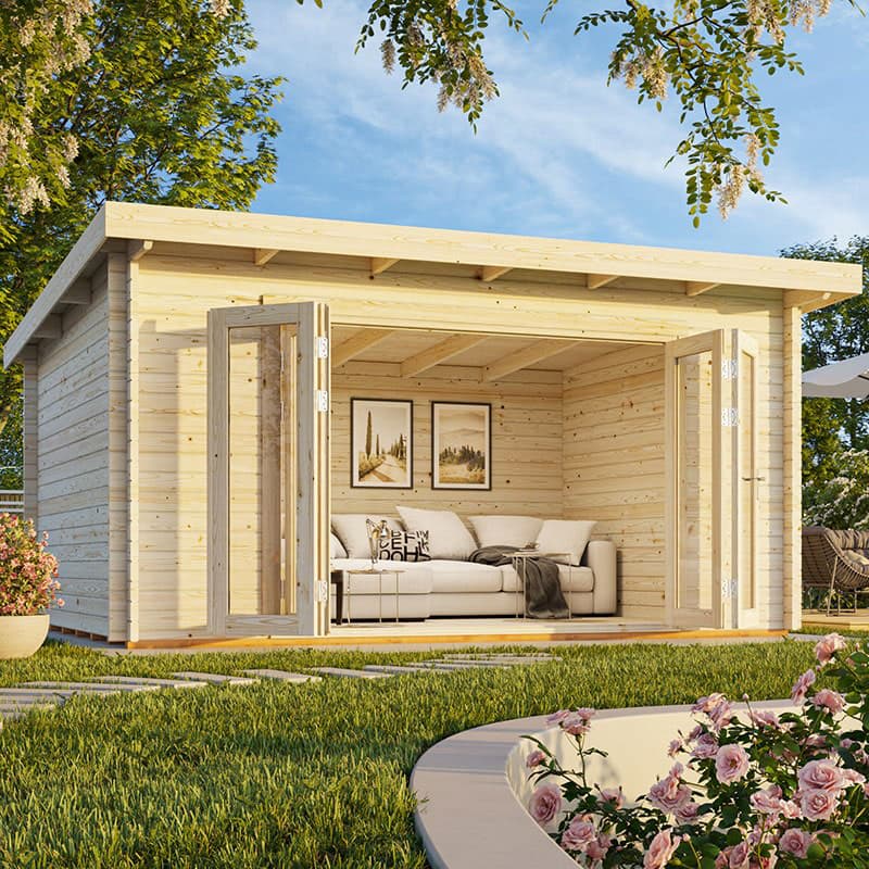 Log cabins share some similarities with summerhouses and sheds in that they’re versatile spaces. A smaller one, like the Forest Harwood 3m x 2m Log Cabin, could make a great home office, with room for a desk, chair and storage facilities. A medium-sized one, like the Palmako Lea 4.9m x 4m Log Cabin Garden Office, lends itself to a lounge room, with sofas and a table. And a larger one, like the Forest Blakedown 6m x 4m Log Cabin, would make a great at-home gym or even a music room, with plenty of space for exercise or musical equipment.