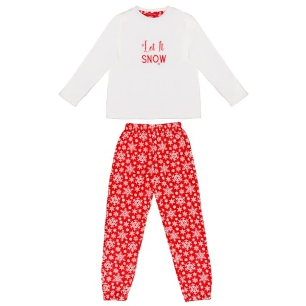 Another way to keep cosy is by investing in a luxurious set of fleecy PJs. This particular set features a sweet “Let It Snow” design, with the slogan delicately spelled out on its soft white top and pretty snowflakes on its cherry red bottoms.