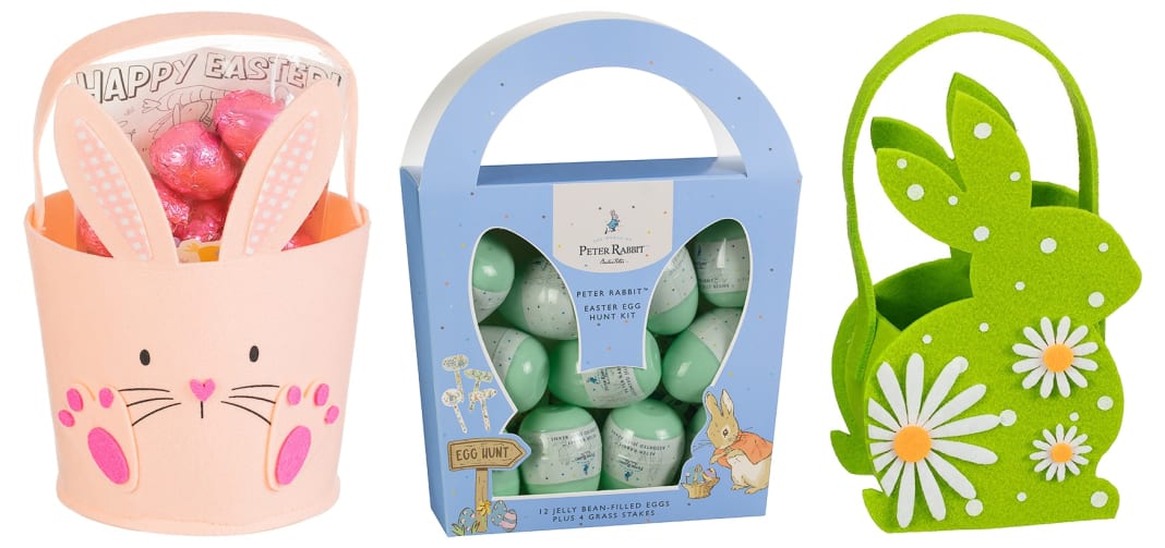 Use real chocolate eggs like Cadbury Crème Eggs, artificial eggs, or a fun, themed kit like the Peter Rabbit Easter Egg Hunt Kit. But whatever you do - don't forget your Easter egg basket!