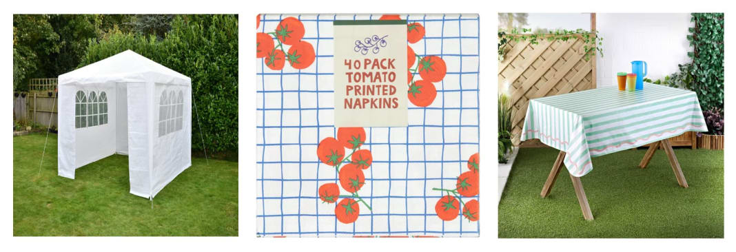 Start by setting the scene with our Party Tent with 4 Sides, fantastic for keeping the fun going whatever the weather. Dress your table with our Simply Wipe Clean Table Cloth for easy, fuss-free hosting, and complete your tablescape with charming touches like our Tomato Printed Napkins and our Palm House Speckled Tumblers.