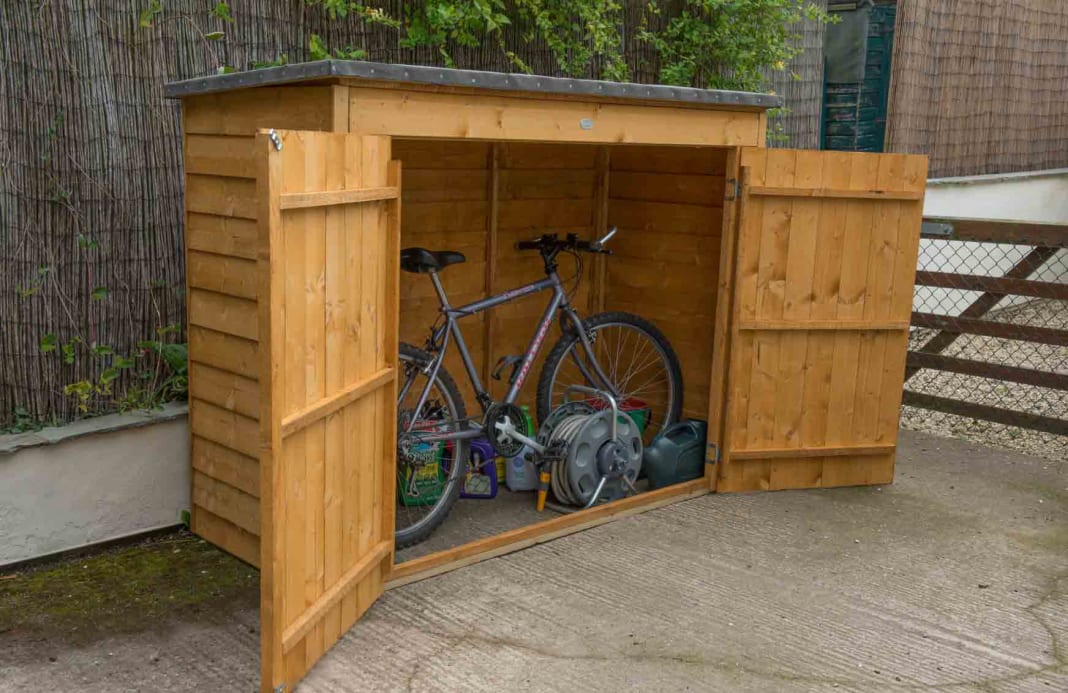 Consider the 6x3 Forest Double Door Overlap Wooden Bike Shed. Made from FSC-certified, dip-treated timber, this bike store comes with a 10-year anti-rot guarantee and is built to last. It features wide double doors with a padlock fixing and hidden hinges to stop thieves in their tracks (padlock not included).