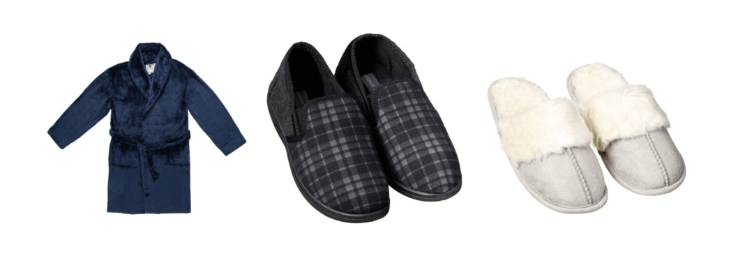 Keep thick clothing, soft fluffy dressing gowns, woolly socks, cosy slippers and snuggly jumpers to hand, and you may just be able to save money on your heating! There’s always a variety of stylish options to choose from too.