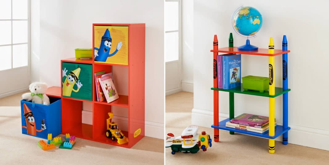 The legs on this adorable Table & Chairs 3pc set are oversized Crayola pencils. How cute!? And you can kit their room out in matching furniture, from 1-2-3 Shelving Units and 6 Cube Shelves, to the 3 Shelf Bookcase and lots more toy storage solutions to boot.