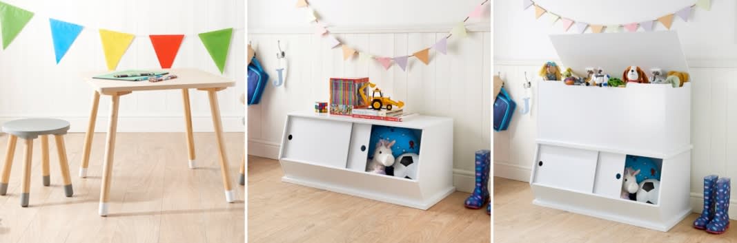Why not start with the kids’ bedrooms? At B&M we have some amazing kids’ furniture ranges that not only look great but act as great space-savers. Perfect for keeping piles of toys out of sight!