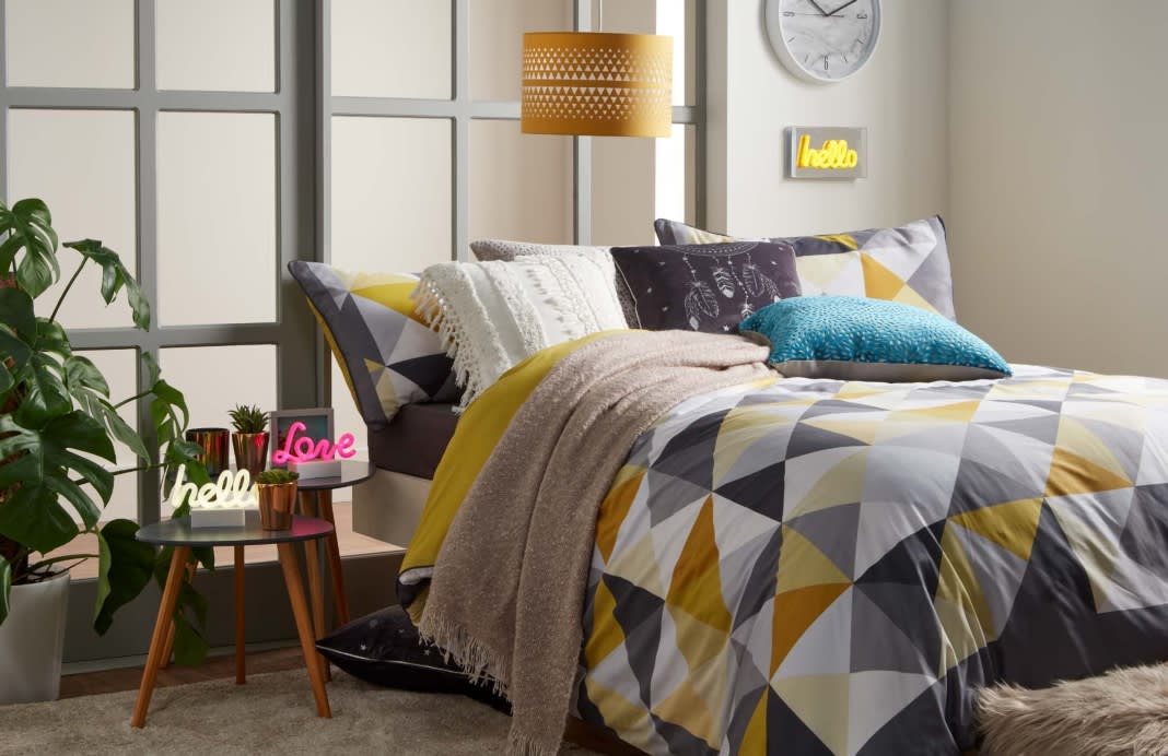 In terms of new bedding, to feel warm, relaxed and cosy on cold evenings, try the Geo Triangles Duvet Cover.