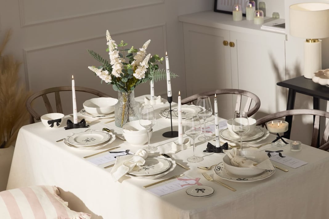 For maximum style, incorporate Decal Bow Dinner Candles to your dining experience and pair with the Tall Black Metal Bow Candle Holder, or the Dinner Candle Holder to complete the Quiet Luxury look.