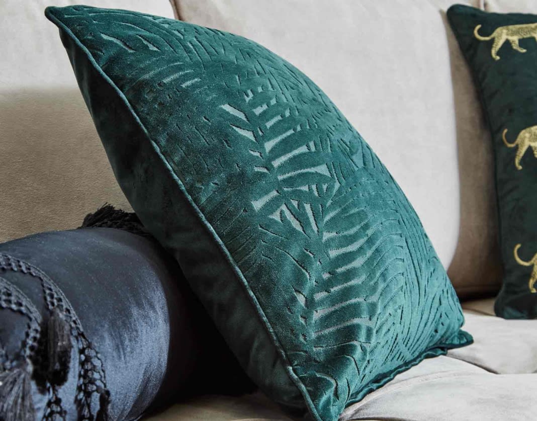 The Pleated Cushion comes in a variety of eye catching colours that will be a great addition to any living room or bedroom. The Dark Green Maya Leopard Cushion features high quality gold stitching, adding a touch of bling to your cushion collection. While the Embossed Velvet Leaf Cushion in dark green, looks and feels like paradise. Why not match it with the dark green Leaf Embossed Throw to complete the look.