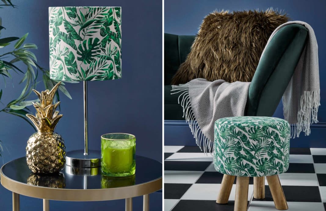 Big green palms are very much in, and you can get your hands on some stunning home décor at B&M in this motif. Pair our Tropical Leaf Table Lamp with the Tropical Leaf Footstool for a splash of colour, and offset them with the striking Golden Pineapple Ornament.