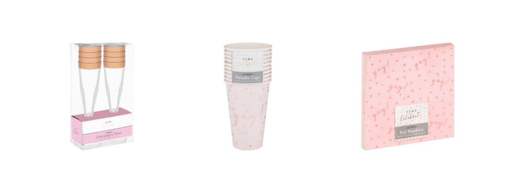 Reusable plastic glasses and champagne flutes will help you to avoid breakages, while pretty napkins, cups and straws add sweet little touches. You could provide different paper plates for adults and kids to make each group feel special.