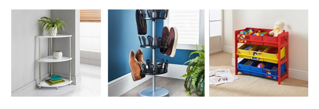 All houses have areas of unused space where you’ll be able to keep things without them getting in the way. Some of the greatest potential lies in your home’s corners. Why not invest in a great little corner unit or shoe carousel? These are small storage solutions that make a world of difference.