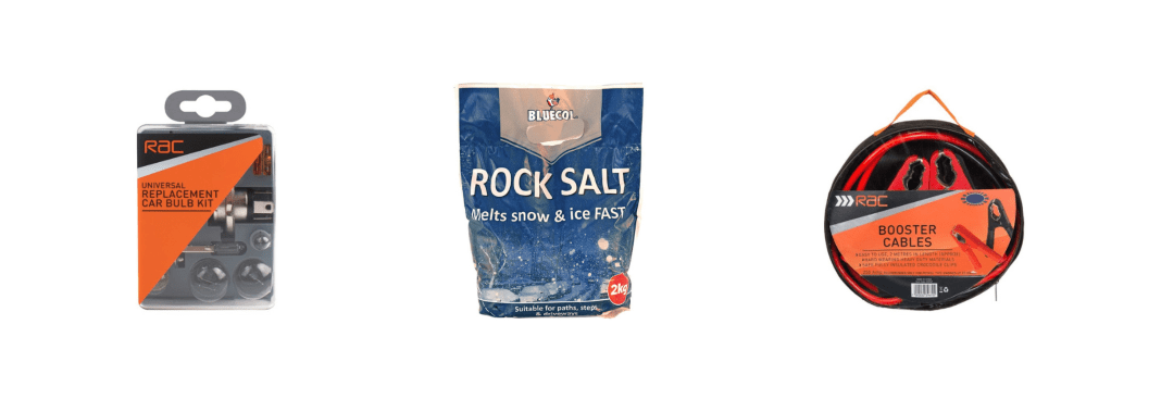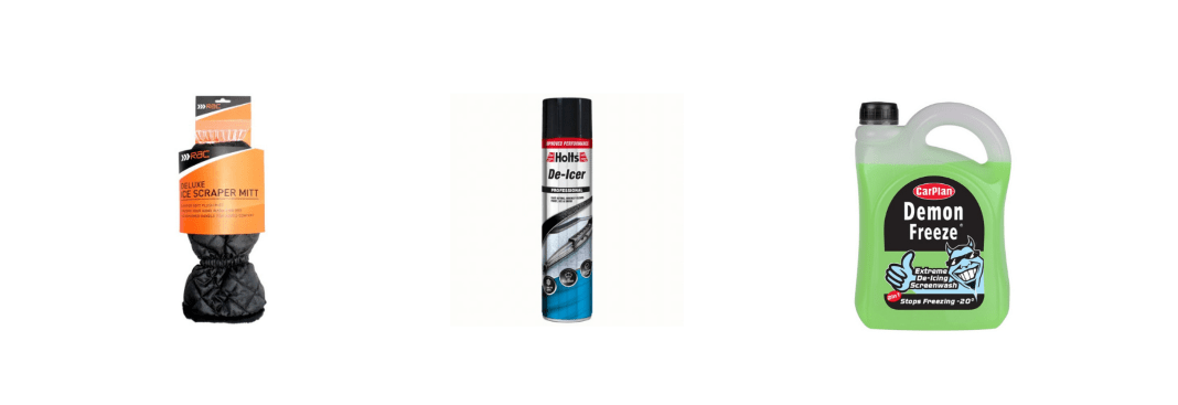 Keep antifreeze for your engine, aerosol or spray-bottle de-icer, de-icing screenwash and a good ice scraper to hand at all times. Not only can icy weather ruin your visibility, but it can also cause severe damage to the inner workings of your vehicle, freezing water and thickening oil.