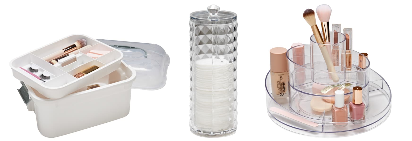 If you have makeup scattered around your house, gather it all in one neat place. Pick up a Multi Tier Cosmetic Turn Table – compact, yet spacious enough to store lots of little items. With transparent material, you’ll be able to see exactly which products you have. Especially once you’ve organised them into categories!
