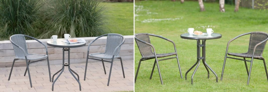 The Sorrento Bistro 3 piece set could be perfect for you, with two comfortable chairs alongside a glass table top. Or the Venice Rattan Effect is similar in style, but offers a darker colourway, so pick what best suits your taste!