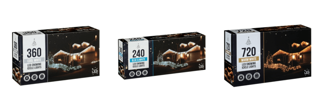 Add a touch of class to your outside Christmas lights by hanging icicle lights over your windows or from your eaves. It’s a lovely touch that will work on its own or alongside other designs, with a number of colour options: cool white, warm white or blue and white.