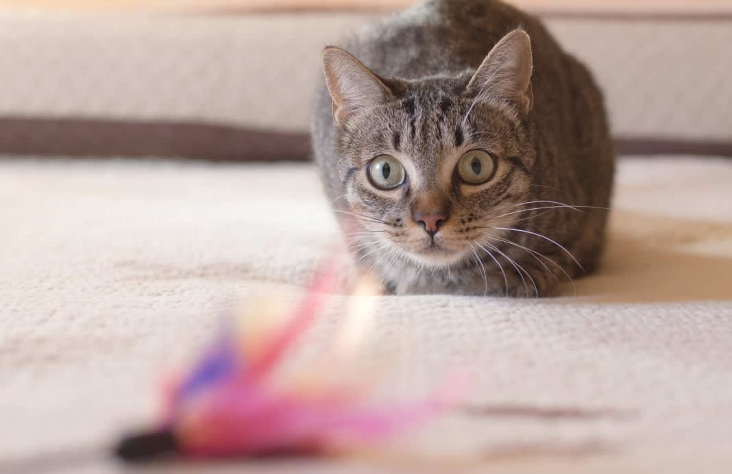 But your cat’s brain and emotional system is still designed for the hunt! This is where play is vital to their emotional well-being. Toys like fishing rod teasers, stuffed animal toys and balls simulate the act of hunting and keeps them mentally and physically stimulated.