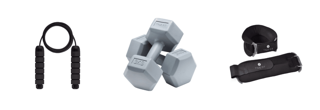Ideally, you’ll need equipment for cardio, strength training, stretching and improving your balance.