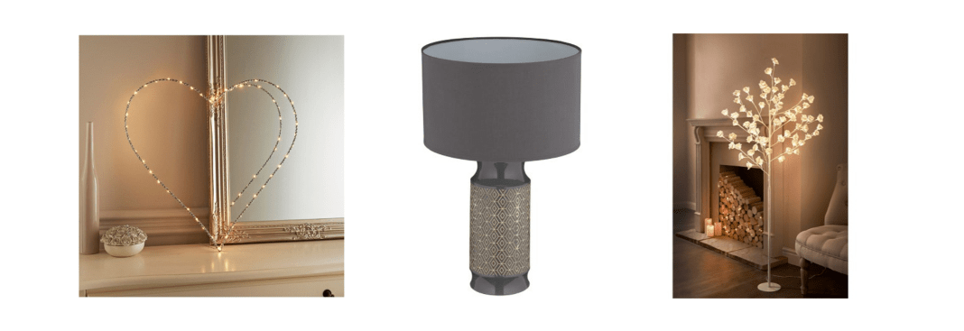 You can also choose practical, attractive and cheap home accessories that stand alone - such as stylish lamps - or go bold and add fun features with a little sparkle. We love creating a fairytale feel with this sweet light up heart sign and this elegant rose tree.