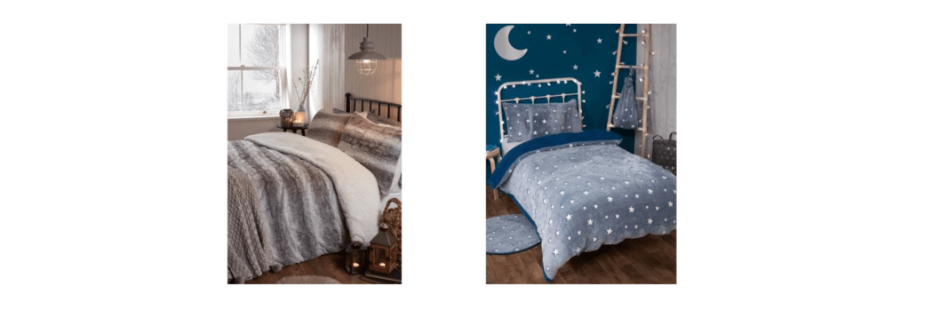 Why not recreate a Scandi ski-lodge with a luxurious grey faux fur duvet set? Otherwise, for something cute and fun that takes advantage of the darker nights, this soft fleece bedding with glowing stars is perfect. These materials will add a much-needed touch of warmth too.