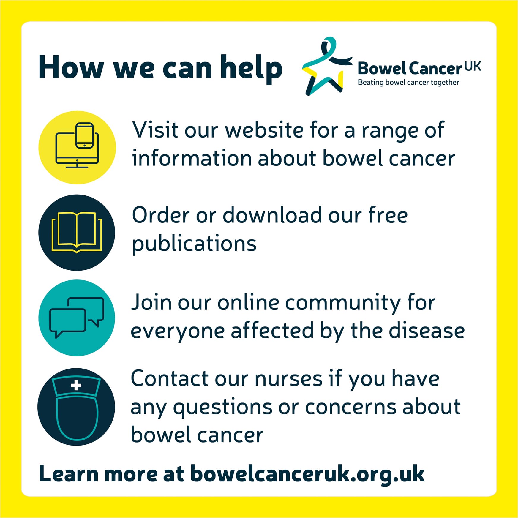 To take our support even further, we’re donating £20,000 to the charity to help fund future initiatives that will save lives and improve the quality of life of everyone affected by bowel cancer.