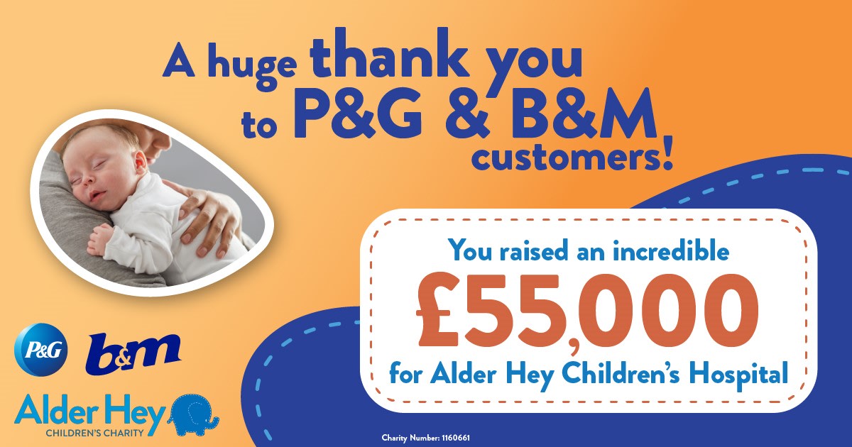 B&M and Procter & Gamble have raised £55,000 from their fundraising campaign to support a new neo-natal unit at Alder Hey Children’s Hospital.