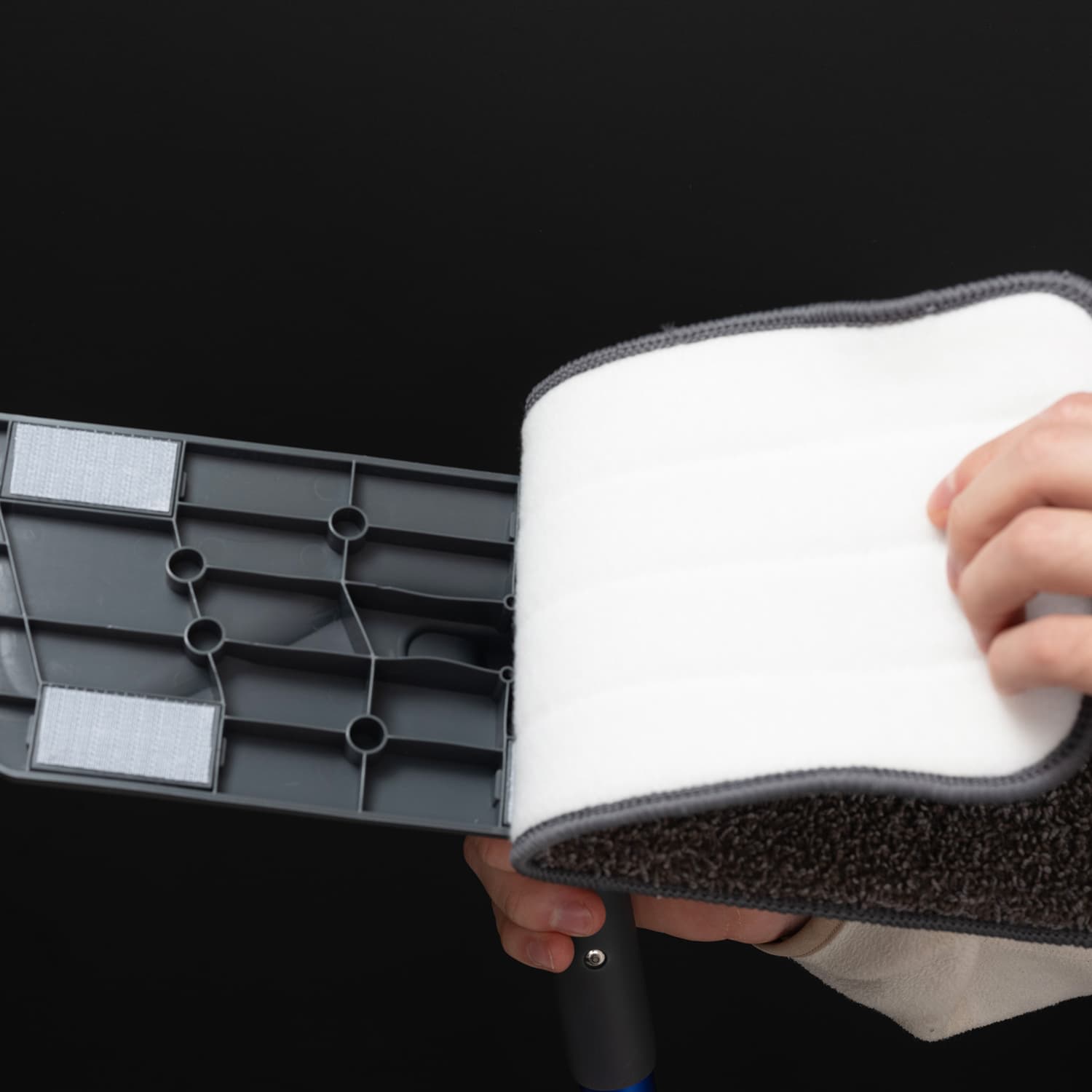 Fill the cleaning spray bottle with warm, soapy water and spray it in front of you.