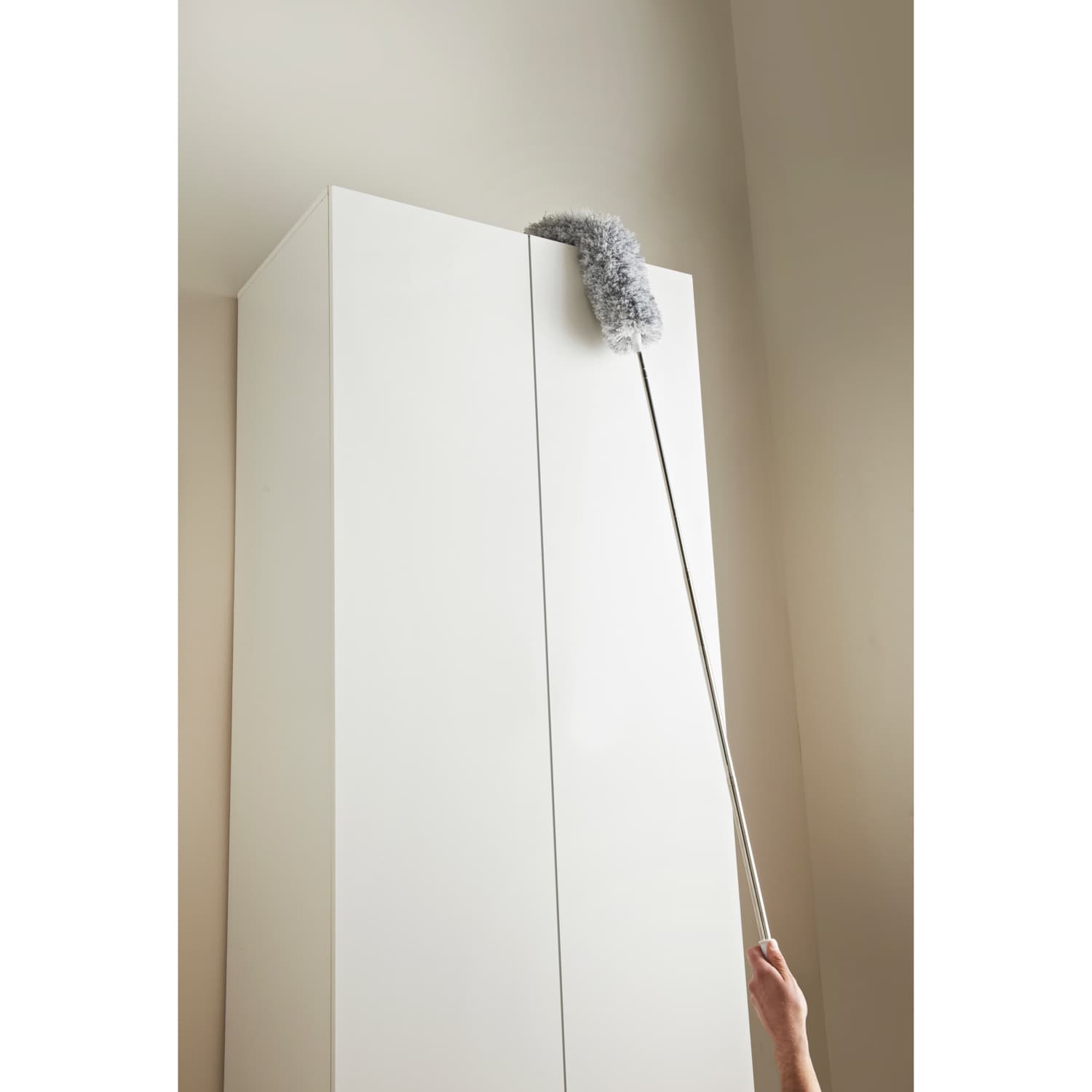 The extendable handle lets you clean all kinds of hard-to-reach places, like the tops of wardrobes and cupboards.