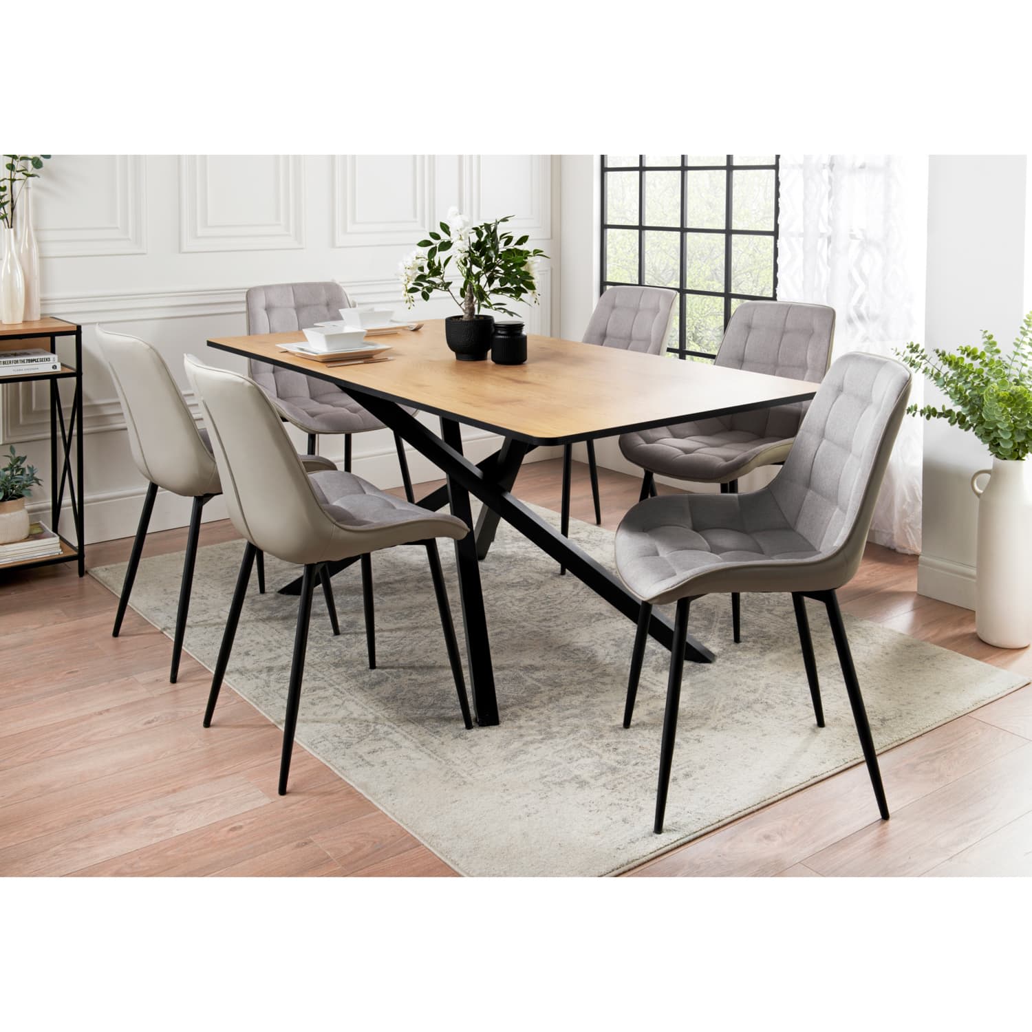 This set includes 1 x sleek oak finish table and 6 x grey chairs, giving your space a stylish and chic look.