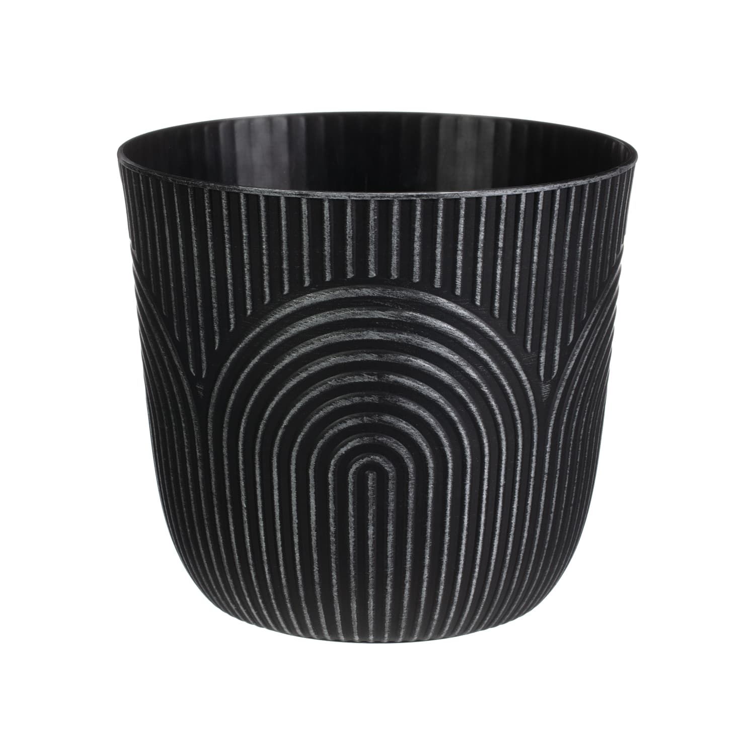 Arch Design Plastic Plant Pot 22cm - Black with Silver.