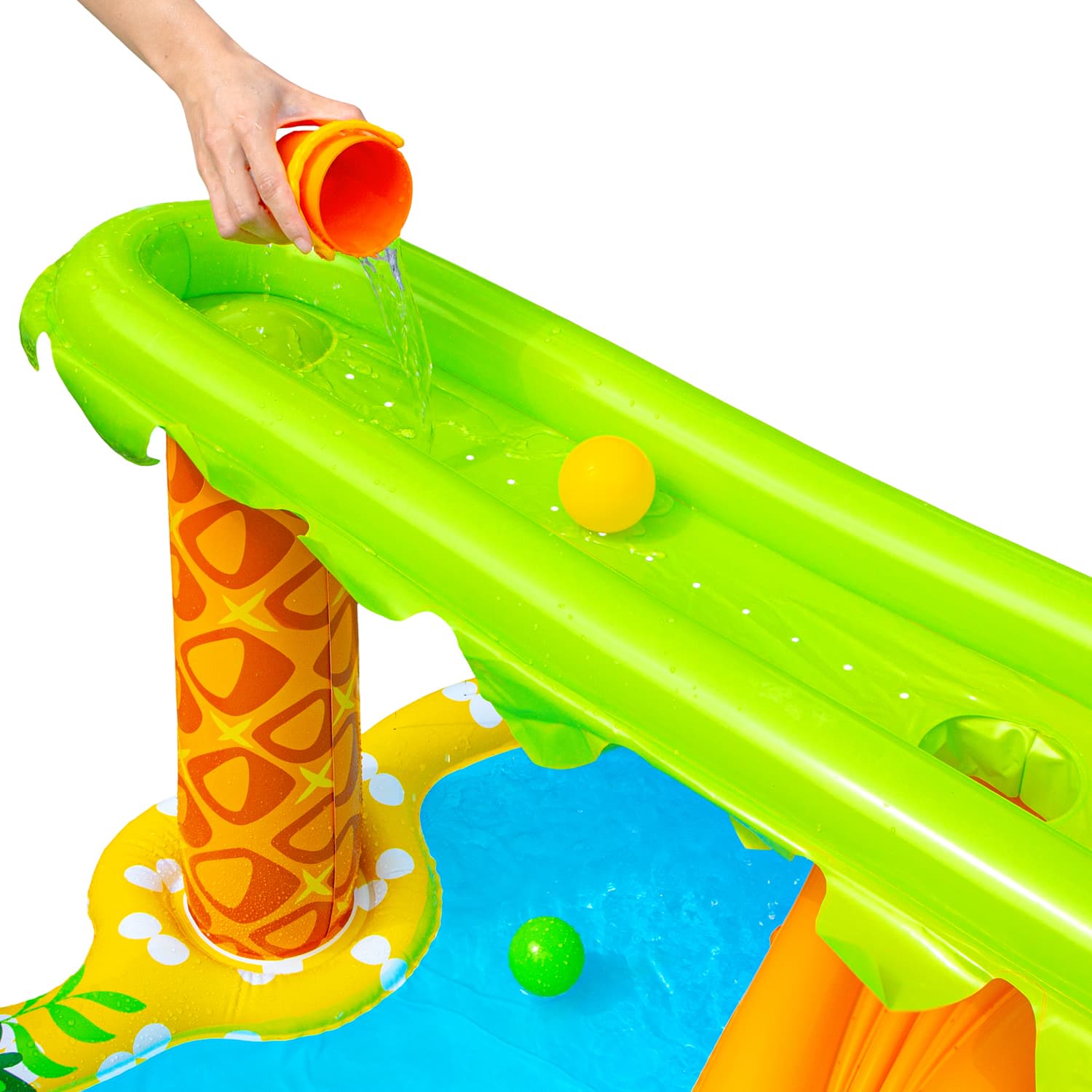 Designed specifically for kids 18+ months, this Rainforest Water Play Center is made with durable PVC construction and is easy to assemble, so the fun can start right away. It's the ideal choice for parents who want a safe, convenient, and imaginative way to make lasting summer memories. Bring home the Banzai Jr. Little Explorer's Rainforest Water Play Center and let the adventure begin!