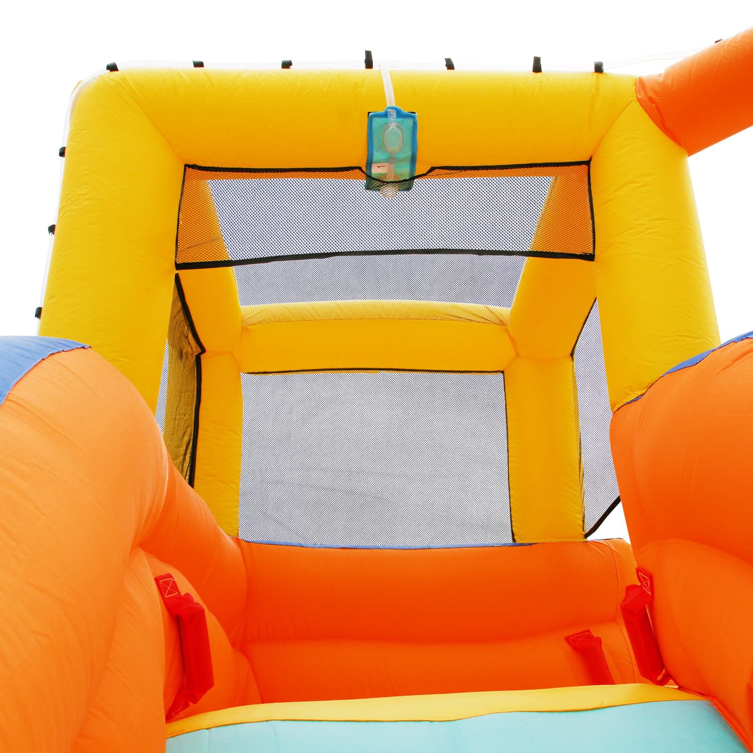 Or take a break from all the fun by cooling off under the overhead shower sprinkler. With the included continuous airflow blower motor, all this fun inflates in under 2 minutes.