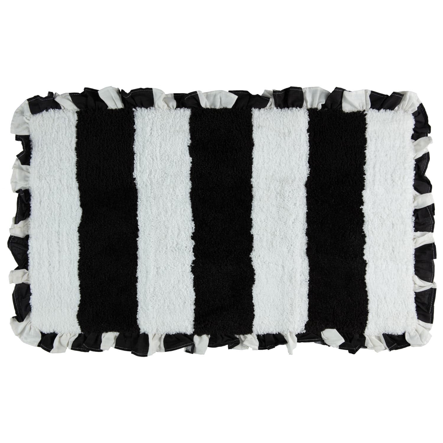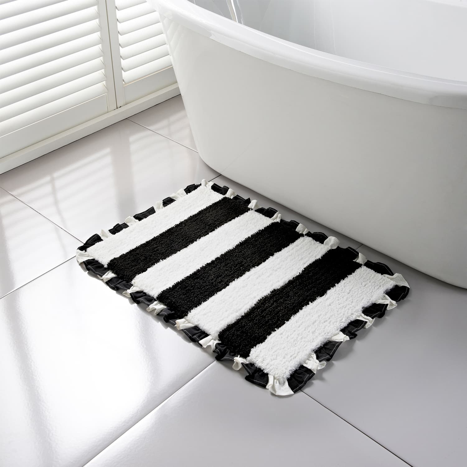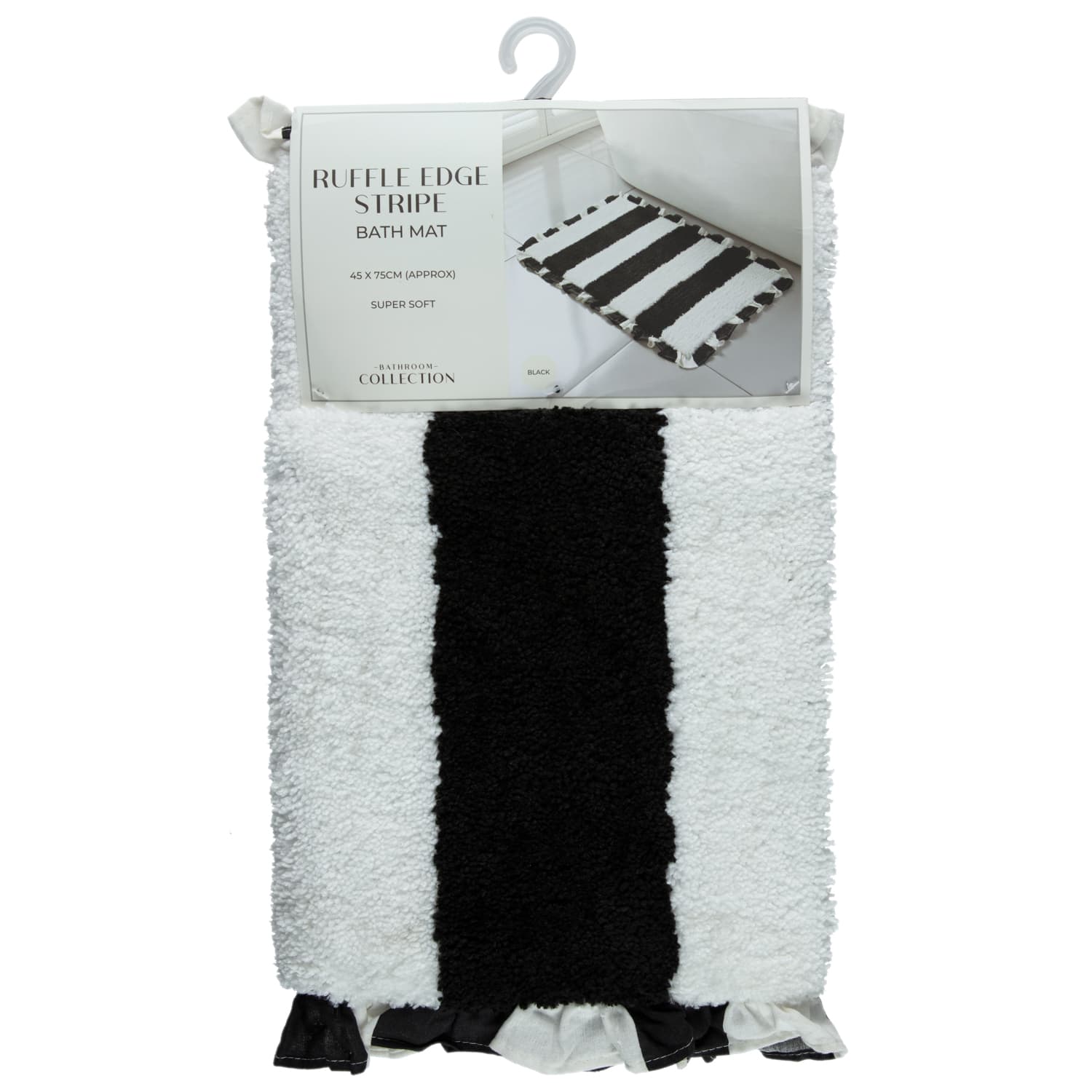 Bathroom Collection Ruffle Edge Stripe Bath Mat - Black.