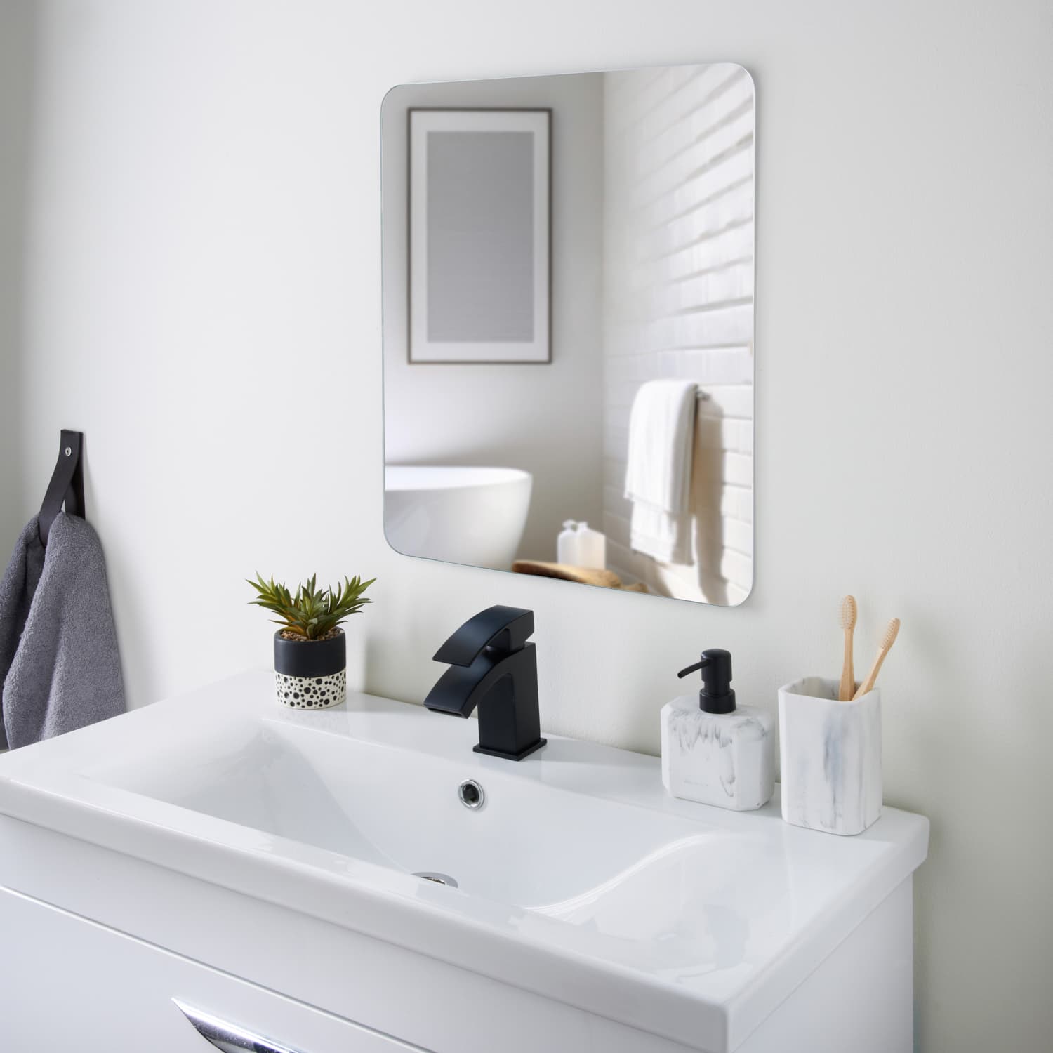 Give your bathroom a sleek new look with this frameless bathroom mirror.