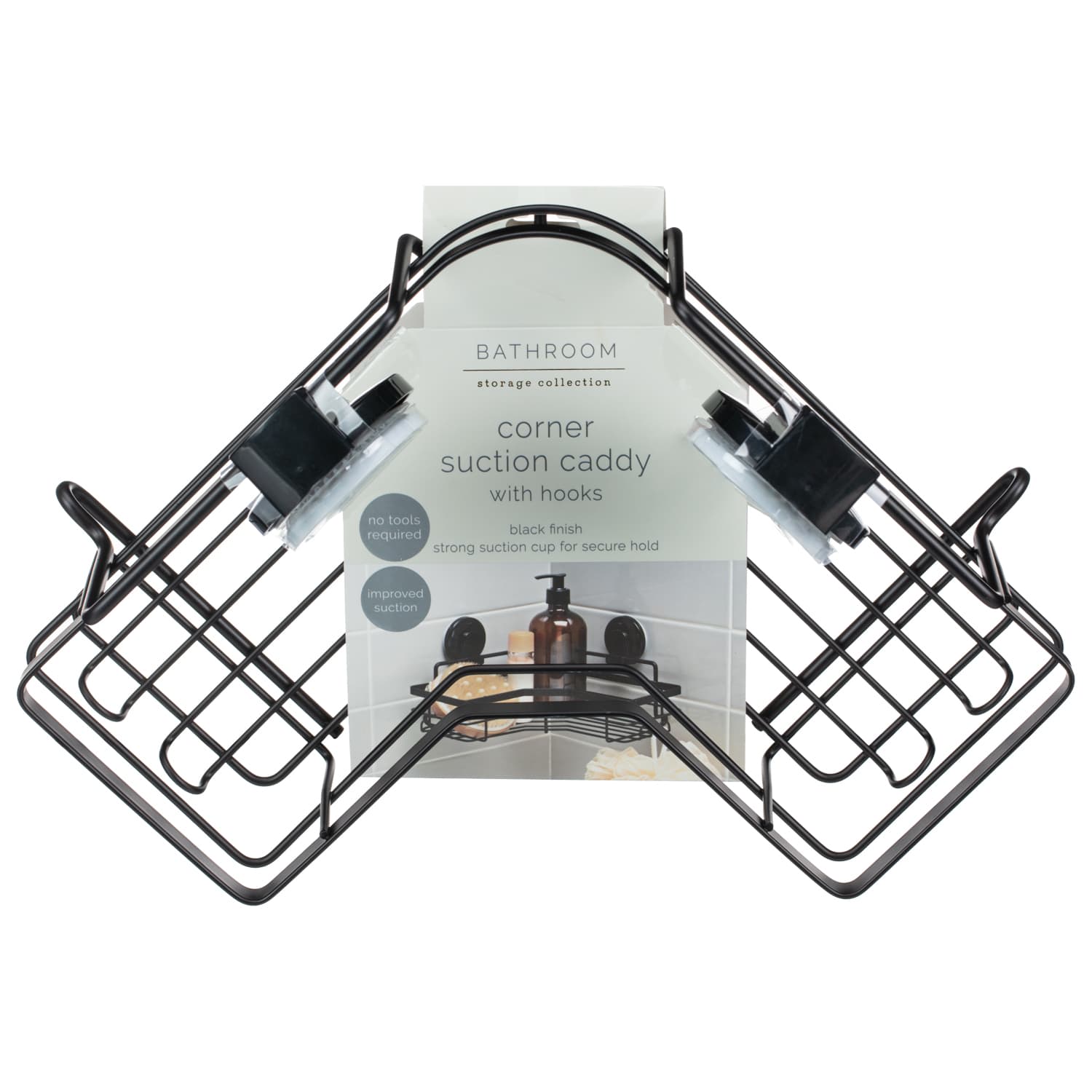 Bathroom Corner Suction Caddy - Black.