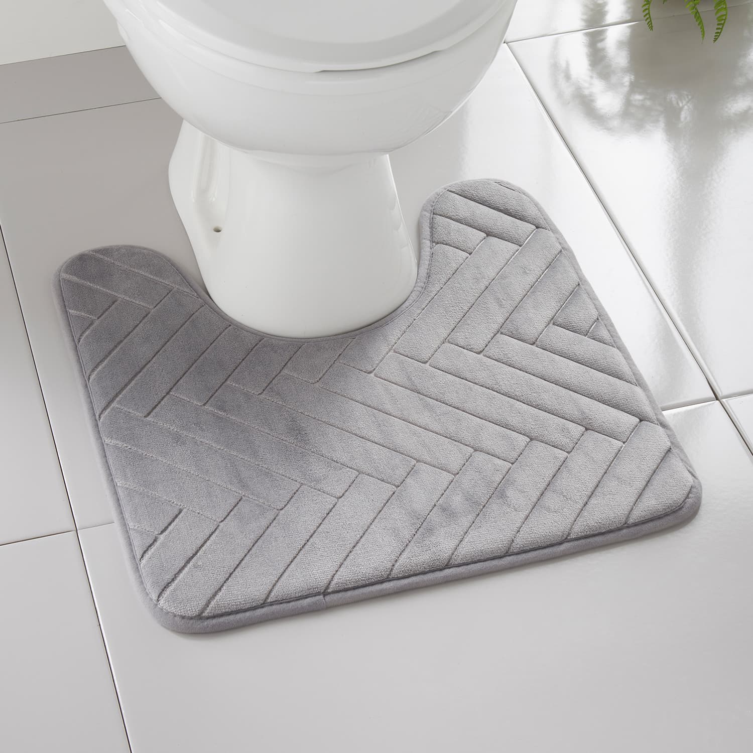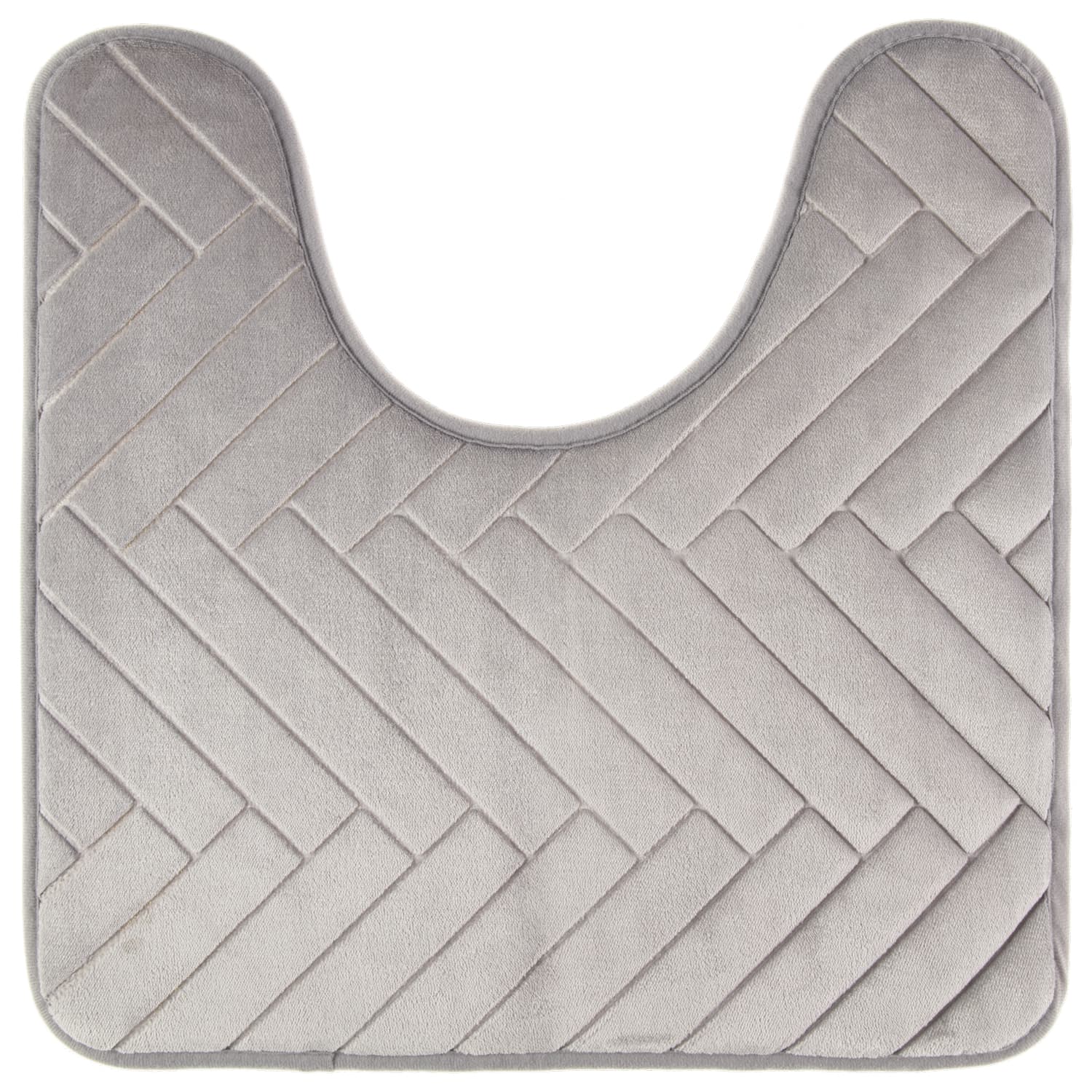 Featuring a memory foam and chevron embossed design, this minimalistic grey pedestal mat complements every bathroom space seamlessly.