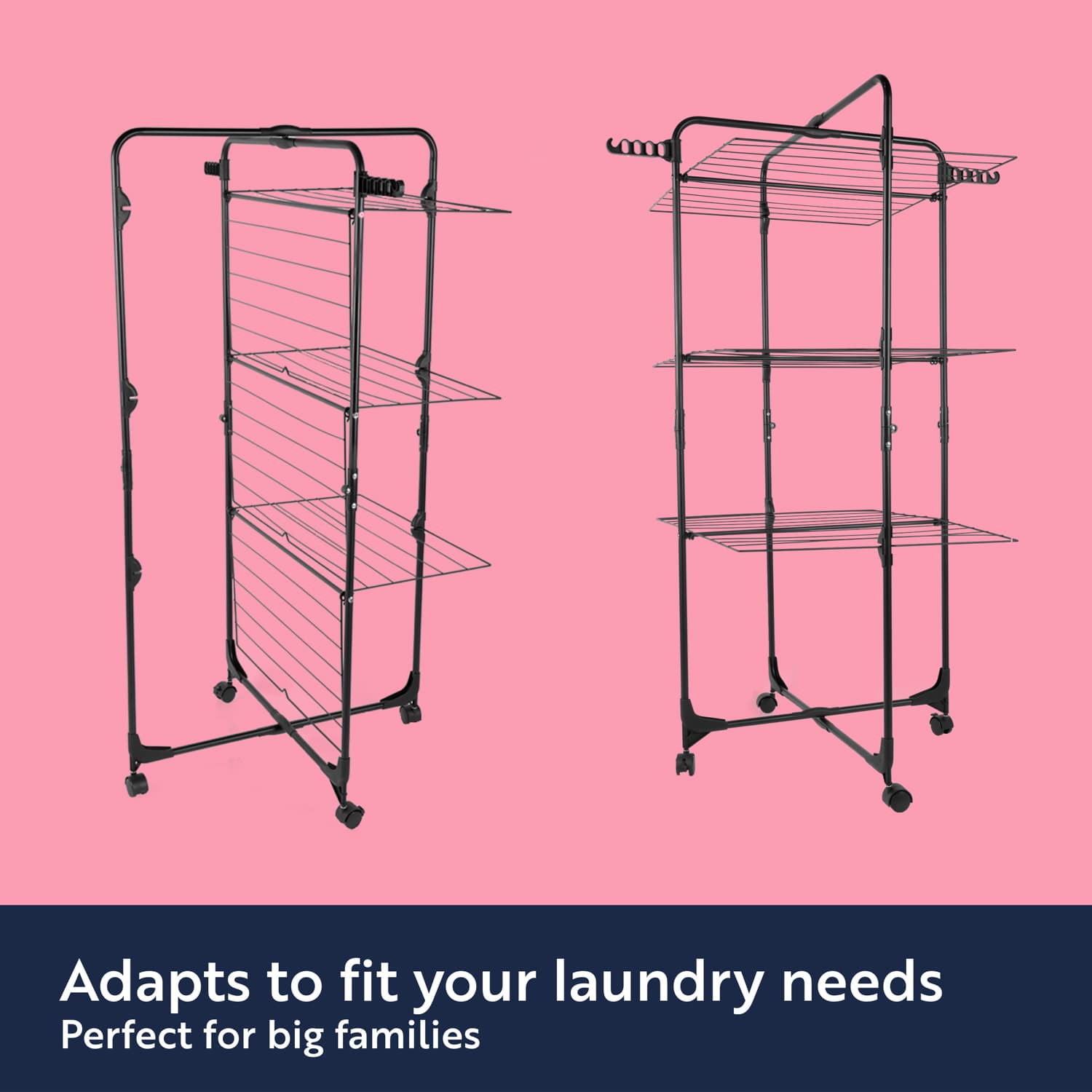This 3 tier tower airer adapts to your laundry needs with up to 30m of drying space - perfect for big families and large laundry loads,