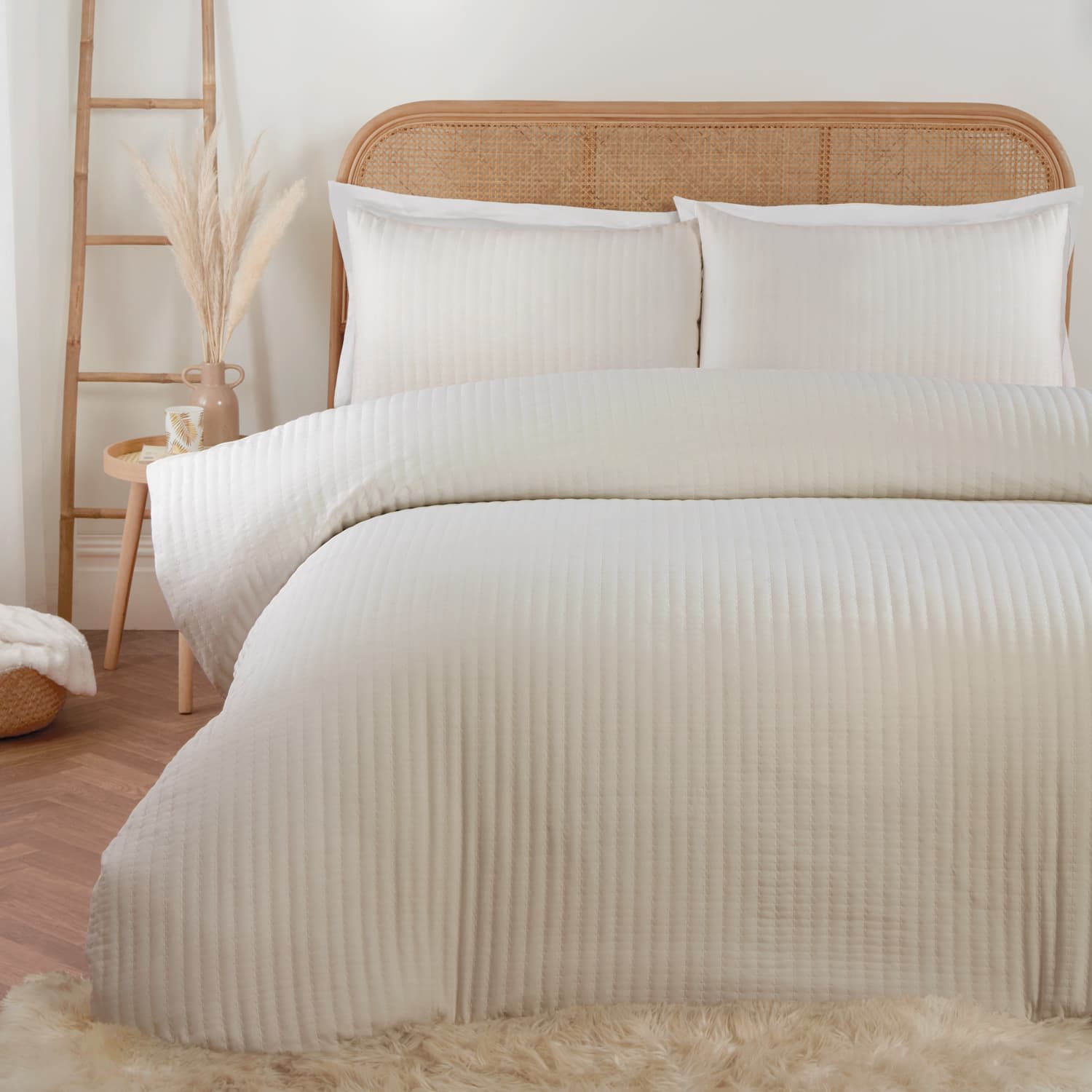 Create a calm and inviting bedroom with this Boho Beach Cream Quilted Duvet Set.