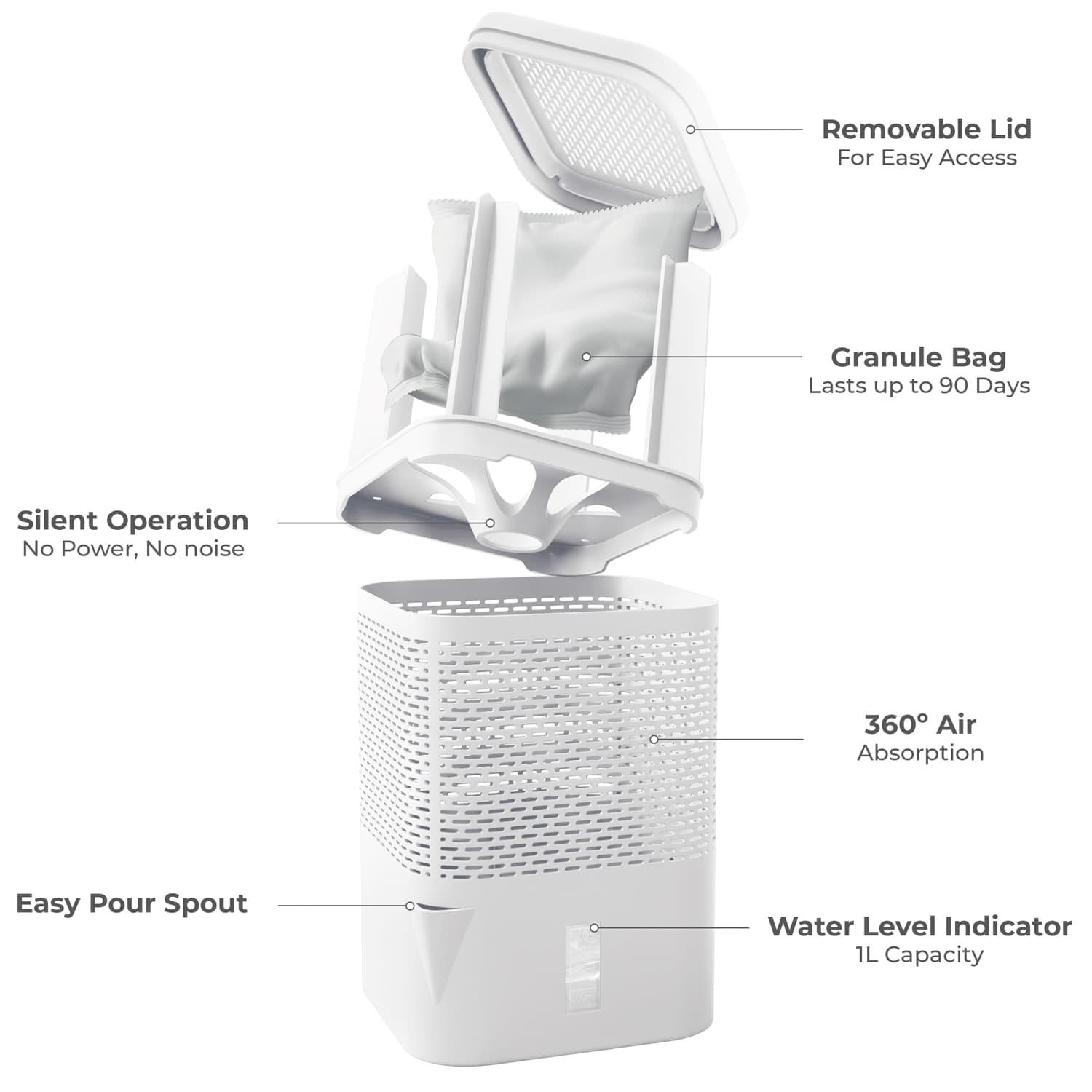 BonAura® AirOne Lite Dehumidifier without electricity with 360° ventilation.