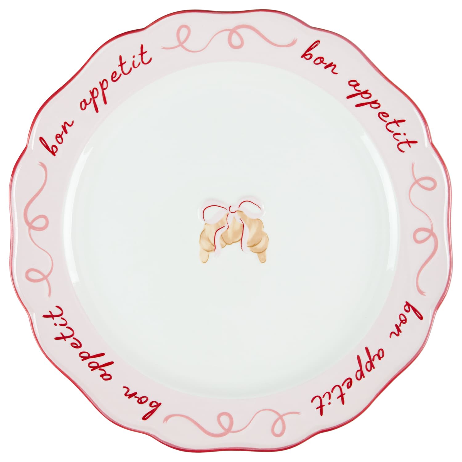With cute bow and croissant motif, and 'Bon Appetit' slogan.