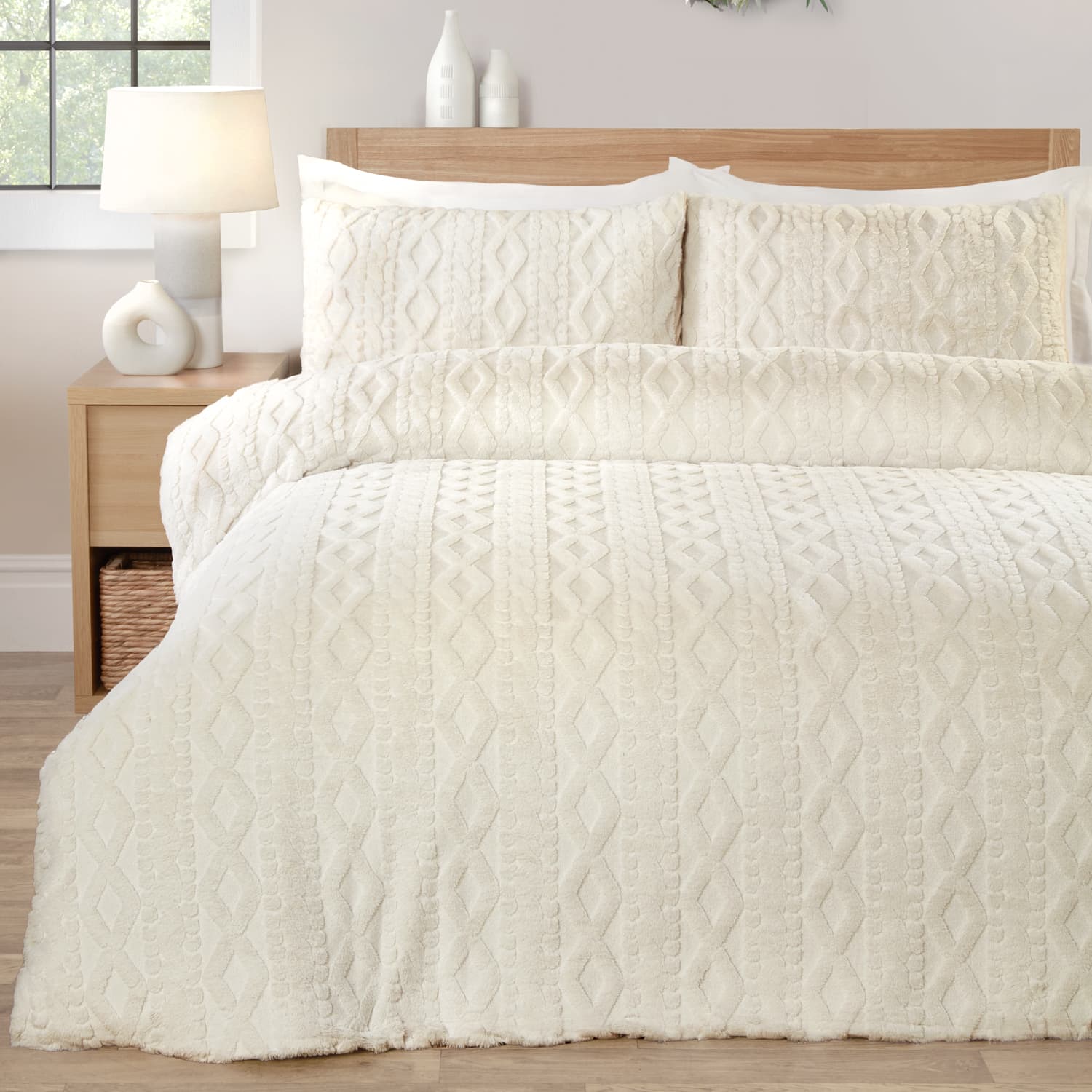 Indulge in the luxury of supersoft bedding with the Cable Knit Cream Duvet Set.