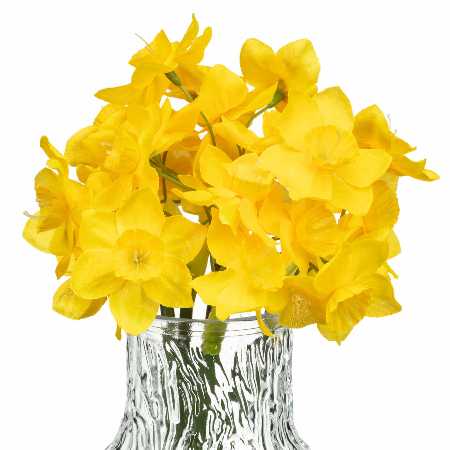 Add some stunning artificial foliage to your home with this vase full of sunny daffodils.