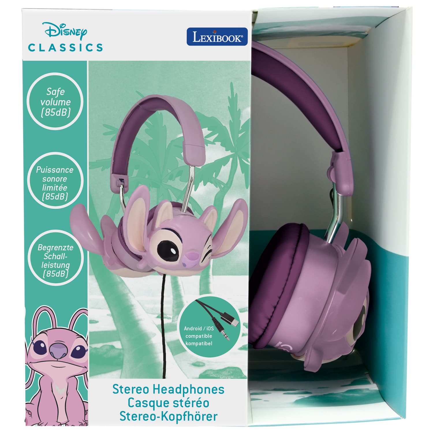 Inspired by everyone's favourite Lilo & Stitch character, these soft over-ear headphones feature soft cushioning and a fun moulded Stitch design, making them perfect for kids.