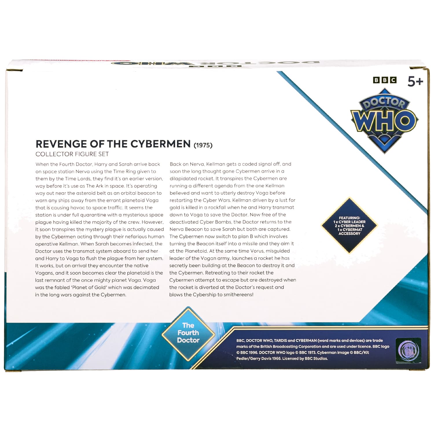 The Doctor Who Revenge of the Cybermen Collector figure set includes 3 x 5.5-inch scale figures as featured in the 1975 episode 'Revenge of the Daleks'.