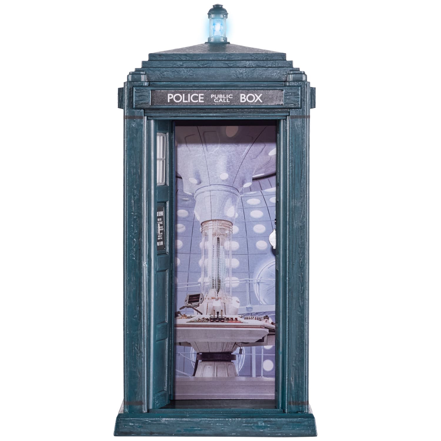 5.5” scale Electronic TARDIS comes complete with light and sound FX plus new TARDIS interior. Also comes with additional swappable interior card.