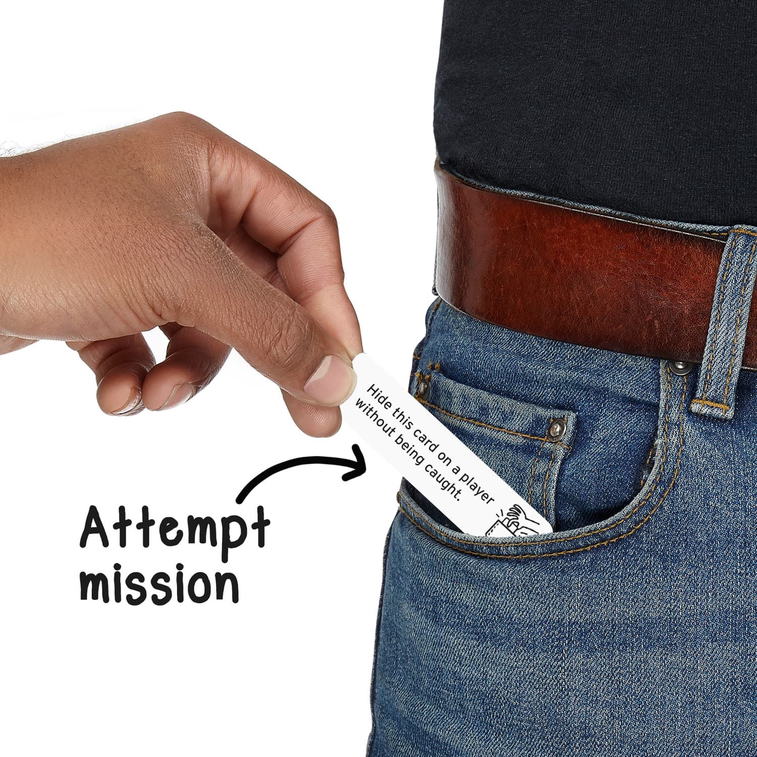 In this party game, each player gets six secret missions to pull off. First to three wins!